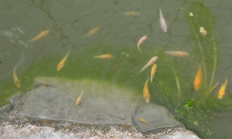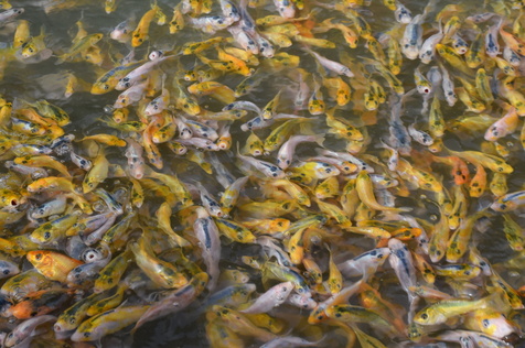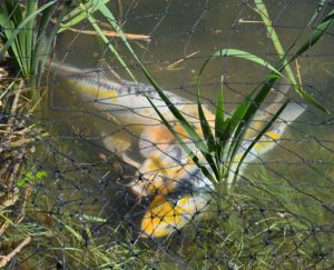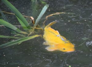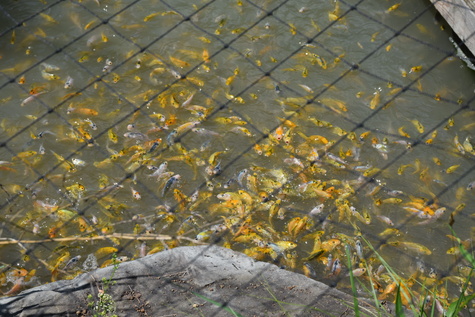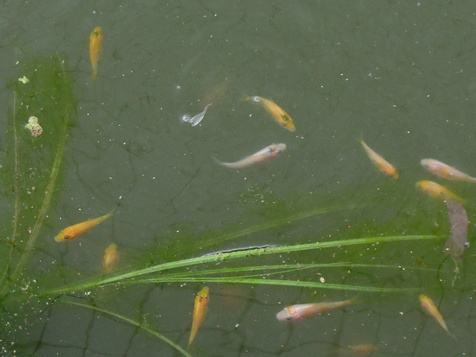 Fish checking out their pond. Spawning in the reeds at the edges of the pond. Took a full day before all took a rest.