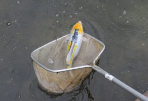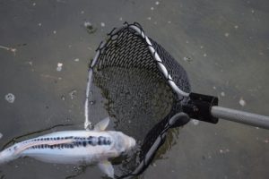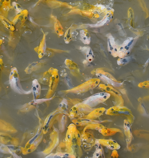 It was a really terrific day. The F1 oyagoi who spawned in May looked wonderful so they live to spawn again. The fish in these nets are ki shusui, ki asagi, midori, ayawakaba, doitsu ogon, one hariwake, and muttagoi from the resulting flock spawns.