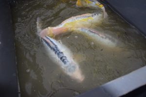 1. Bad news/ good news. Bad news first. The F2 who were supposed to be wintering over in the Lower Pond, growing up and preparing for a spawn in 2018 or 2019 were largely wiped out. Unfortunately, mink got into the pond over winter and reduced the population from 14 to 2 survivors, neither of which are spawn material.
