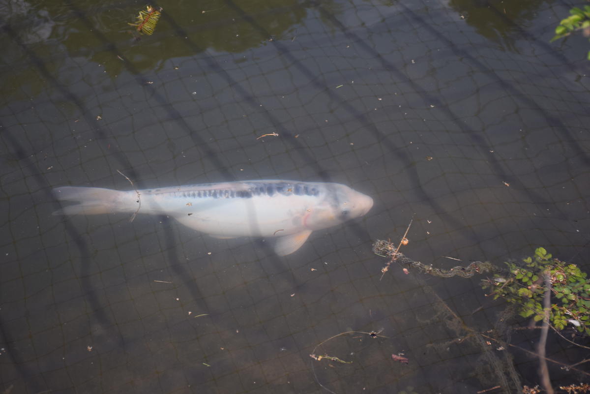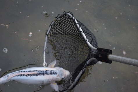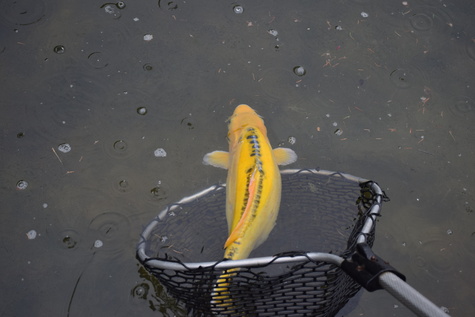 2. On May 5, friend and fellow koi kichi, John Clark came over to view the wreckage and brainstorm with me about next moves. We drained the Lower Pond, moved the survivors to a pet pond. We also drained the Big (Ki Shusui Project) Pond and recaptured the F1 oyagoi. We set them aside in a holding pond for the moment.