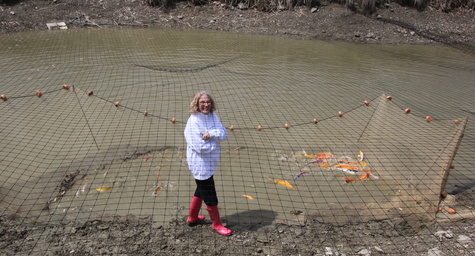 4. The oyagoi, three male, three female, were transferred to the Lower Pond. They were hatched there, grew up there, and previously, they spawned there. They were sooooo happy to be out of nets and into this clean beautiful pond.